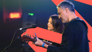Musicians Tim Bricheno and Daisy Chute performing at Quiet Night Out